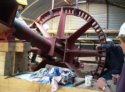 One of the hardest jobs of the restoration so far has been removing the turbine (pictured above) from the base of the turbine well. This is probably the first time it has been out of the muddy marsh water since it was installed when the mill was built! In remarkably good condition has been used as a pattern for a new turbine. The original has been retained for display.