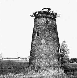 In 1988 Arthur Smith recorded that the frame remained on top of the tower and the brake wheel was visible but there was no windshaft. The turbine was also in situ inside the mill.